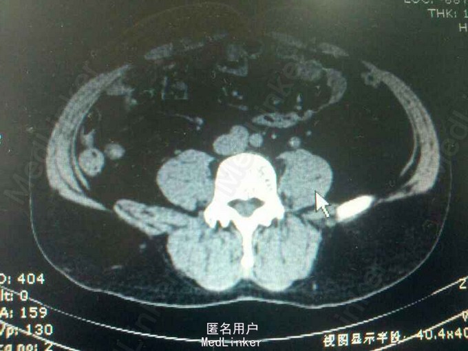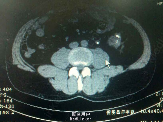 男性,50岁,左侧腰痛5小时入院!尿量无明显减少! 既往,行右侧无功能肾切除术!左侧输尿管结石钬激光碎石术!慢性肾功不全病史!