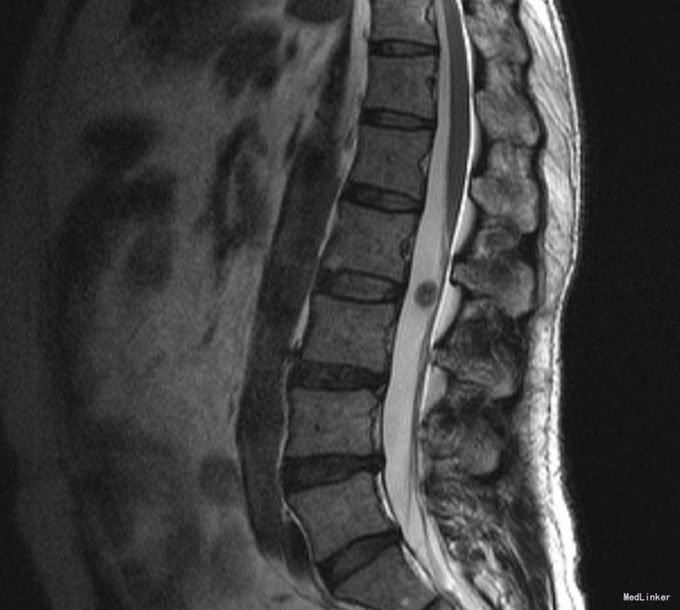 腰椎MR示:1.L2/3水平椎管内结节,脊膜瘤考虑2.腰椎退行性变,L4\5,L5/S1椎间盘突出。