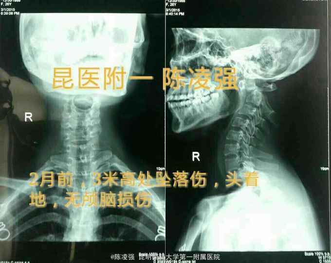 高处坠落致头颈不适2月,按摩后加重1周