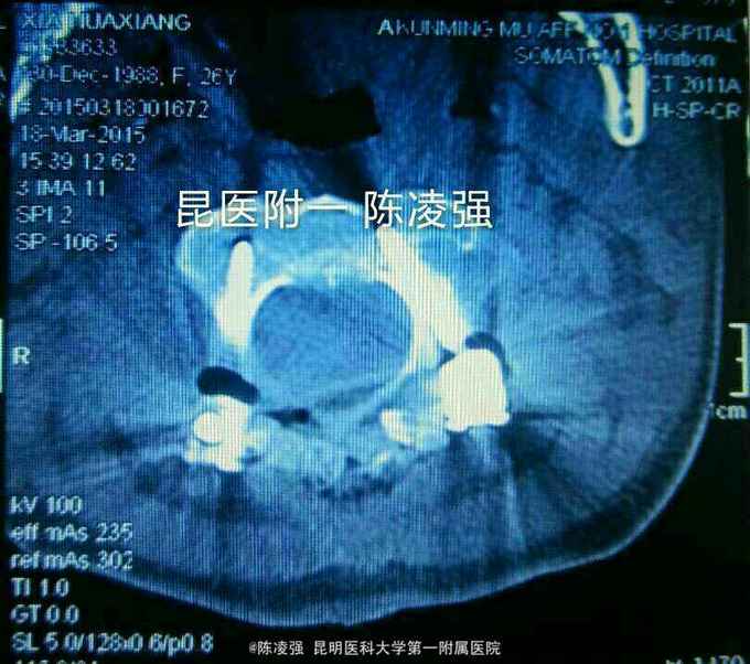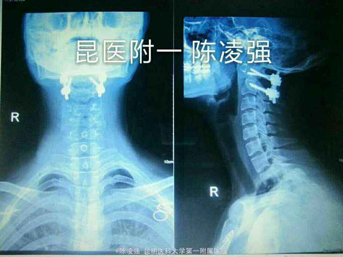 齿状突陈旧骨折,环枢脱位 予以牵引,部分复位后,后路寰枢椎椎弓根钉固定复位融合术