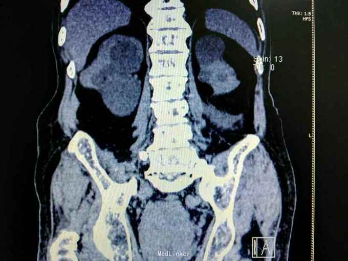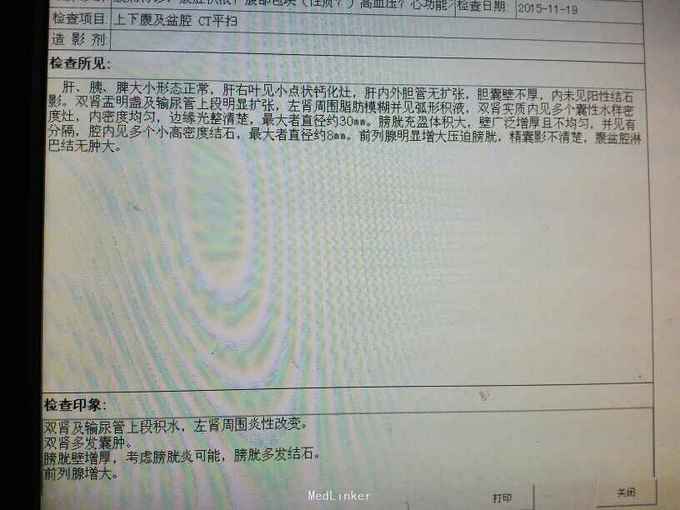 前列腺增生症 尿潴留 双肾积水 肾功能不全,膀胱结石,尿路感染,双肾多发囊肿。给予留置导尿,间断分次放尿后,出现肉眼血尿,持续膀胱冲洗,颜色较红,伴血凝块间断堵管。