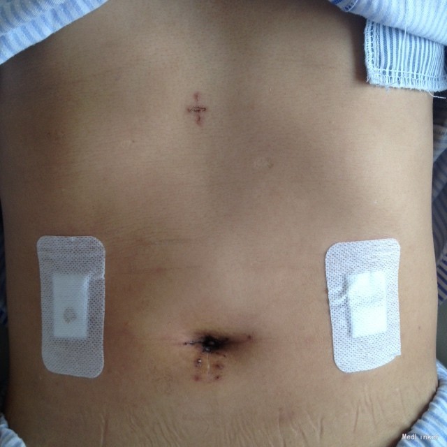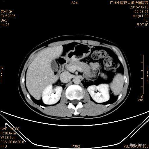 患者术后随访,饮食、大小便正常,无腹痛、腹胀不适。每日少食多餐,饮食量逐渐增大。 腔镜远端胃癌根治术的手术方式有全腹腔镜、腹腔镜辅助和手助腹腔镜手术方式。腹腔镜手术最大的优势是缩小了手术切口并减少了对腹腔的干扰。腹部小切口方便胃癌标本取出以避免强力牵拉而增加肿瘤细胞脱落种植的危险、利于淋巴结清扫等优势。因此该病例我们均选择全腹腔胃癌根治术。当然选择手术方式还应根据术者的经验、技术熟练程度、患者经济条件情况、肿瘤的部位和大小、淋巴结转移情况、肿瘤浸润深度及远处是否转移、上腹部是否有手术史等条件决定。因此患者入院后术前检查、准备及讨论尤其重要,一般认为腹腔镜胃癌手术适用于肿瘤浸润深度在T:(侵及肌层或浆膜下)以内者,但浆膜受侵面积<10cm者;胃癌术前、术中分期考虑为I、Ⅱ、Ⅲa期者;无上腹部手术史,无腹部严重粘连者,无严重心、肺、肝、肾等疾 患"。对术前评估分期困难的病例,应行腹腔镜探查术中评估,对于不宜在腔镜下完成手术的病例,应及早中转开腹。