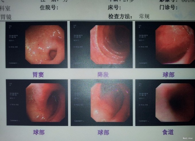 随访:扁桃体局部伪膜形成。术后第四天行纤维胃镜检查,见胃体下部小弯侧及胃窦前壁多处不规则陈旧出血点、瘀斑,表面呈黑色,周围粘膜色泽正常。术后第七天出院。 讨论:应激性溃疡为应激原所引起的急性胃肠粘膜糜烂,点状出血,浅表性溃疡,在应激反应后数小时到二周内即可发生,一般无典型症状,常因突然发生上消化道出血而被内窥镜发现。本病因首先排除扁桃体术后局部引起的出血。应激性胃溃疡特别是在并发休克、感染、或肾、肺、肝等脏器功能严重损伤时有直接关系。该病的治疗主要为抗感染,输血,应用抗酸剂,维持水电平衡等。