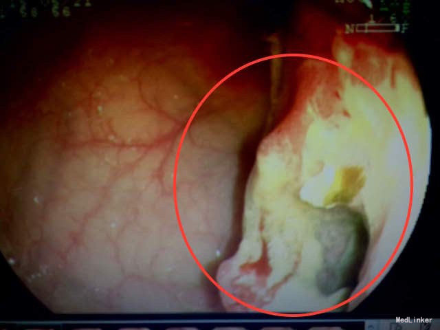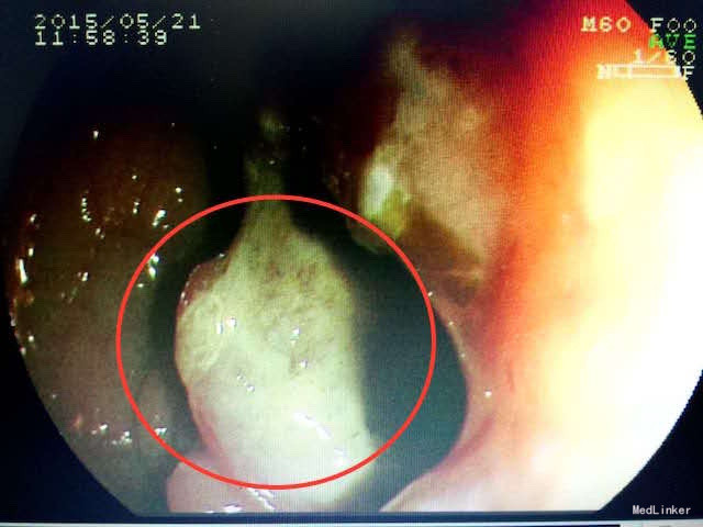 男,64岁,主诉:间断性上腹痛2年,加重3月余。 现病史:患者缘于2年前无明显诱因出现腹痛,中上腹为主,呈隐痛,程度较轻,当时未重视,3月前患者自觉腹痛加重,发作较频繁,进食后腹痛明显,间中大便带血丝,伴纳差,无腹胀、腹泻,无发热、黄疸,无反酸、烧心、呕吐,无胸痛、胸闷等不适,遂入院治疗。 既往史,个人史,婚育史,家族史无特殊。
