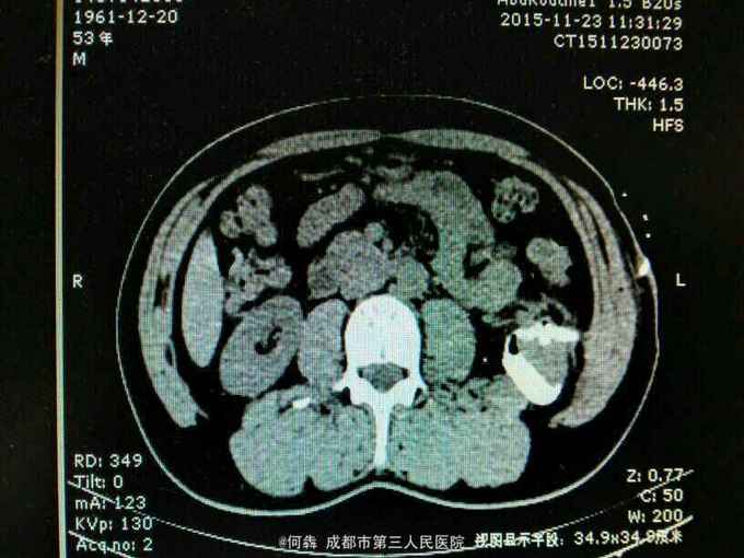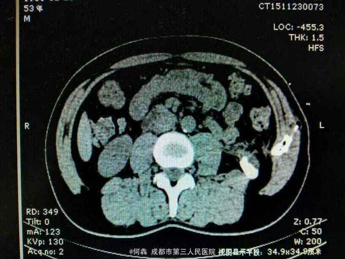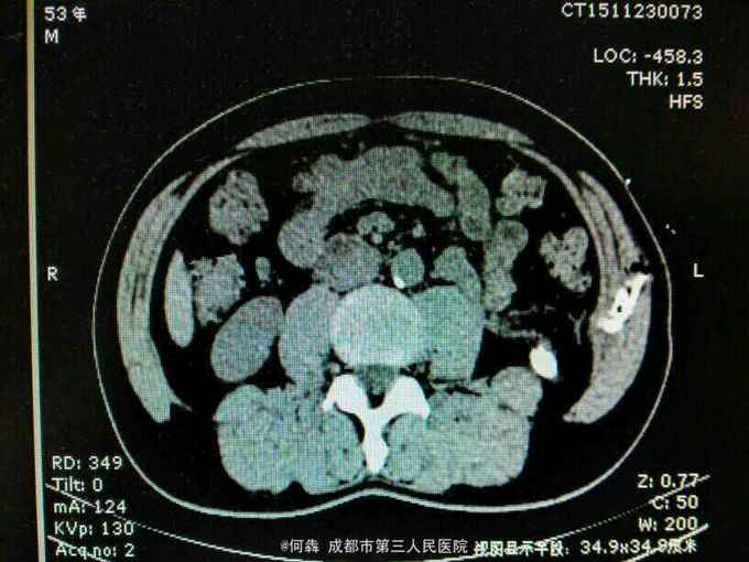 53岁,男性,因“腹腔镜下双肾囊肿切除术后1年余,左腰部窦道形成10月余”入院。无高血压病及糖尿病。