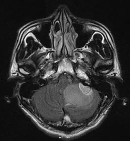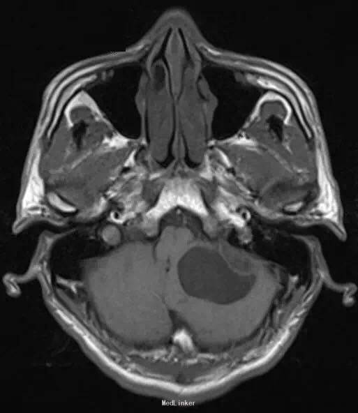 血管母细胞瘤是一个良性、缓慢生长的中枢神经系统内的血管性肿瘤。占颅内肿瘤的 1% 到 2.5%。成人最常见的小脑原发性肿瘤。需要与转移瘤;静脉畸形;脓肿;星形细胞瘤相鉴别。