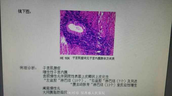 外院超声提示盆腔可见15*10cm大小囊性包块。完善相关检查后全麻下行卵巢肿块切除术,术中冰冻提示卵巢透明细胞癌。逐行卵巢癌根治术,及广泛肠粘连分解术,术后病理提示卵巢透明细胞癌,子宫肌腺病。