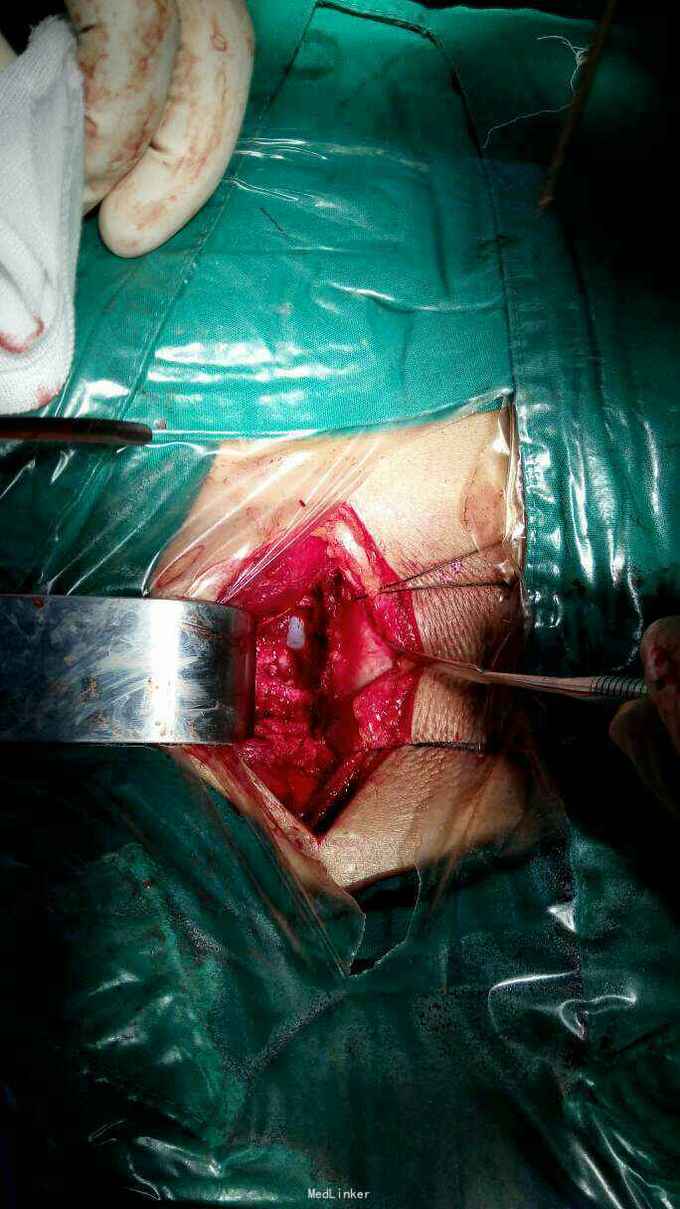 腰椎间盘突出症,骶管囊肿 在神经阻滞麻醉下行,后路腰4~5椎间盘摘除术,骶管囊肿切开引流,神经根外膜松解术。 术后患者腰痛,右下肢麻木缓解。