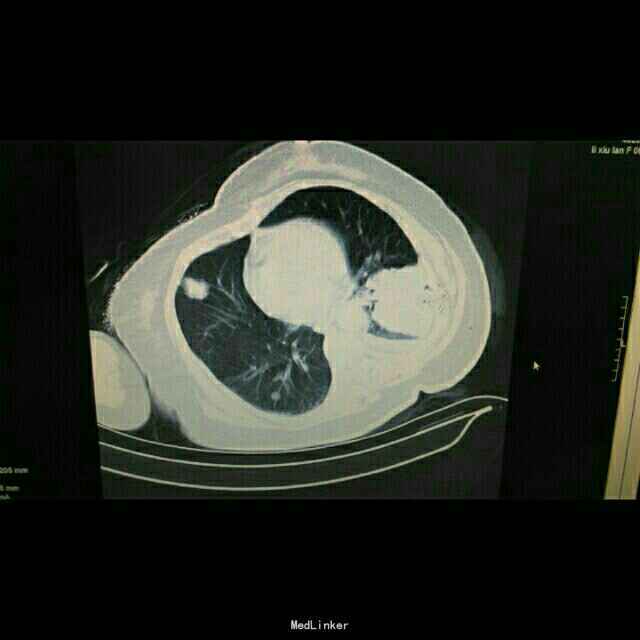 患者治疗后一月余行肺ct检查病灶肺部病灶明显缩小!口服特罗凯治疗耙向治疗!