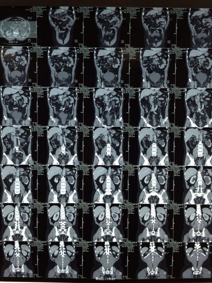 体检发现左肾积水3月余。无尿频尿急,排尿困难。当地医院彩超示:1双肾积水2右输尿管扩张3左侧输尿管走形迂曲并扩张4膀胱位置抬高5前列腺显示不清。为求进一步治疗前来我院。门诊行检查后诊断为盆腔脂肪增多症,建议患者行左肾造瘘。患者表示拒绝,至北京某医院就诊,给予行双侧输尿管D-j管置入,未成功。再次至我院就诊,门诊以“盆腔脂肪增多症”收住院。