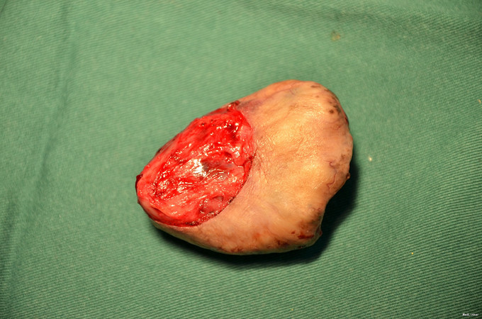 术后2周拆线,皮片完全成活。嘱患者加强随访。