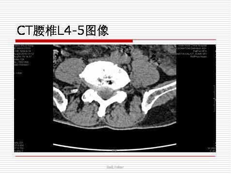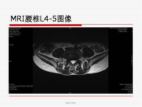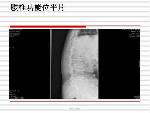 查体:患者神志清,跛行步入病房,脊柱四肢无畸形,腰椎前屈侧弯及旋转后伸不受限,四肢活动不受限。左下肢直腿抬高试验(-),屈颈试验(-),仰卧挺腹试验可疑(+),4字试验(-),右下肢正常。左大小腿正常,双下肢肌力正常,活动无障碍,左足小趾无压痛,无红肿及皮肤破损。L2-L4椎体棘突及椎间隙压痛叩击痛(-),椎旁肌肉压痛(+),加重时VAS评分5-6分,缓解时4-5分。 辅查:数字化X光腰椎功能位摄影 ---L5及L2稍显向后滑,脱腰椎骨质增生及骨质疏松。 腰椎CT ---L2-S1椎间盘轻微膨出。 L2-L3椎体轻度失稳。 腰椎及骨盆MRI---L2-S1椎间盘膨出,L2及L3椎体轻度失稳,老年性骨质疏松治疗,双侧骶髂关节退行性变 下肢肌电图----双侧下肢足周围神经源性损害