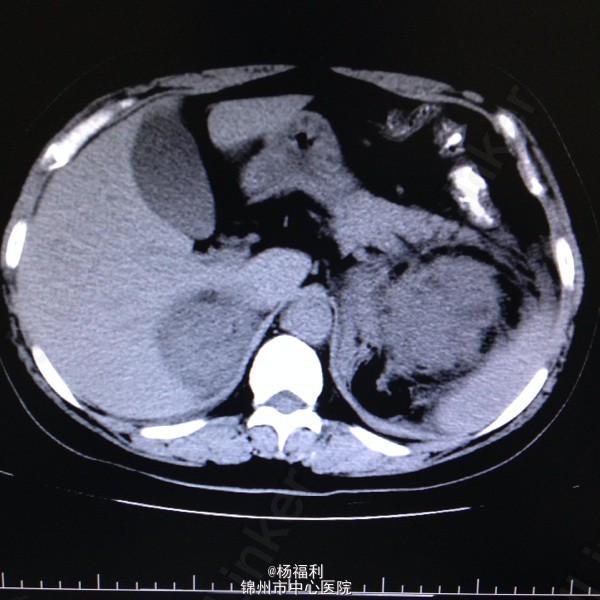 44岁女患。为消化科我会诊患者。 现病史:以上腹痛9小时为主诉入院。无发热及寒战、噁心未呕吐,无腹泻及黑便。 既往史:双眶炎性假瘤2年,口服激素治疗,并补钾。