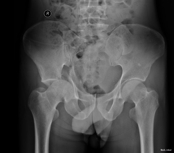 专科查体:患者平车入病房,有大腿内收畸形,右髋部疼痛,压痛(+),左腹股沟处疼痛,自述左下肢稍麻木,右下肢感觉无异常,双下肢活动可,双侧足背动脉可触及。