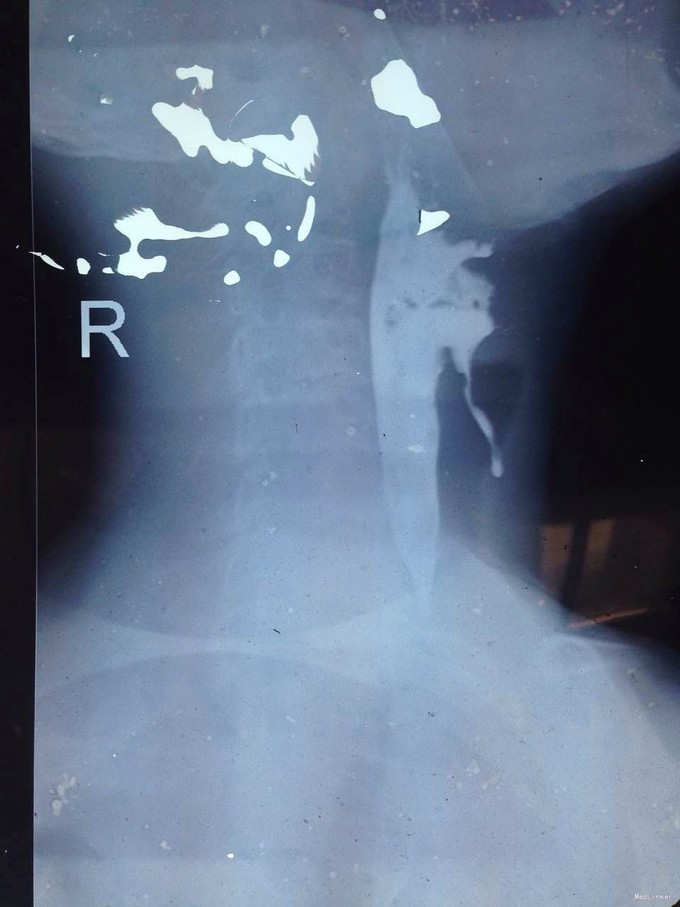 该患者明确瘘口位置后,转到了耳鼻咽喉科,据耳鼻咽喉科主任说,这种病例在他们科也是少见的,进一步的治疗还在随访中。各位同道如有想法,也恳请支支招。