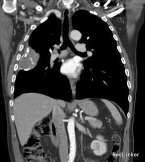 胸膜肺血管肉瘤非常罕见,文献报道不到 50 例。大多数病因未知,只有几例来自亚洲的报道认为慢性结核性脓胸是一种可能的危险因素。