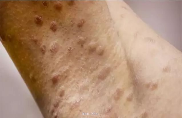 患者男,30岁,面部、躯干、四肢丘疹、结节4年余。