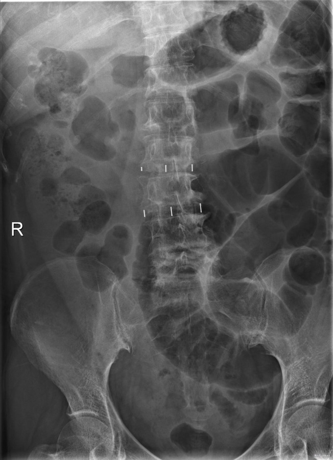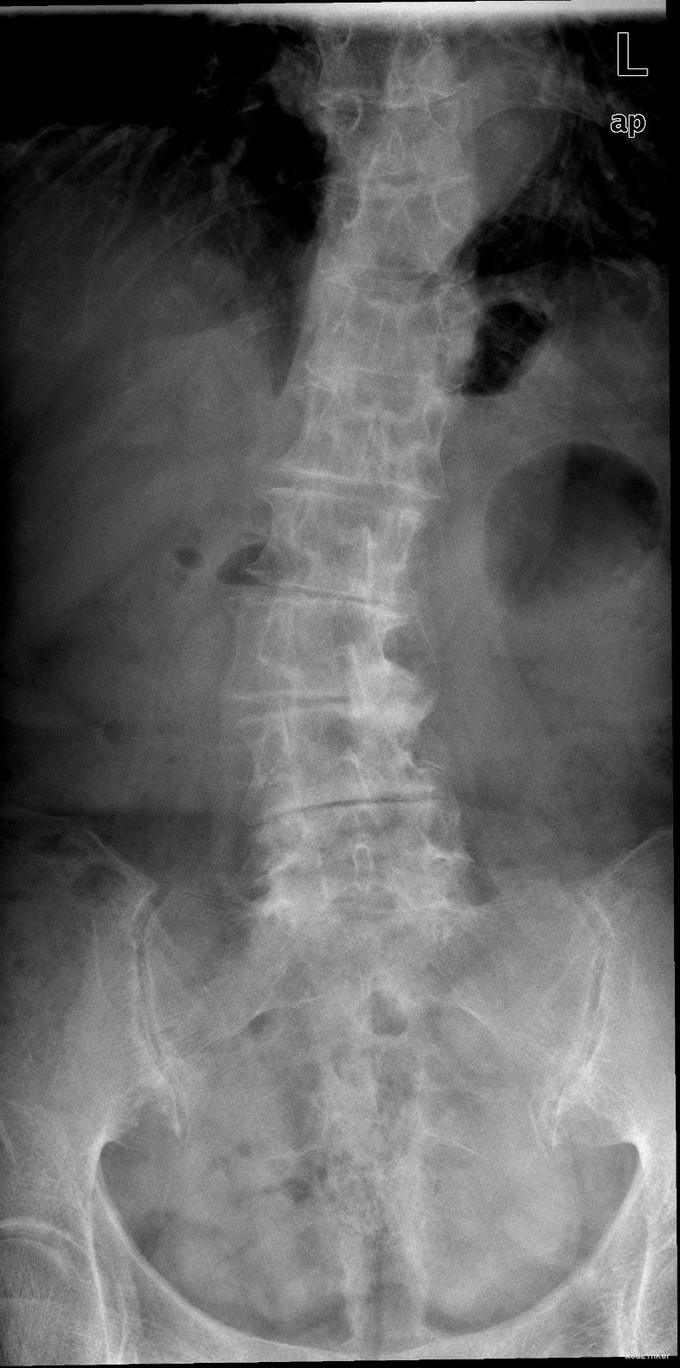主诉:腰部无力伴右脚麻木3-4年 病史:患者女性,67岁,3-4年前出现腰部无力感,腰前屈后无法直起,时伴腰痛,同时有右腿麻木酸胀,走路后症状加重,过去三年中,采用针灸,膏药,理疗等保守方式治疗,症状未明显缓解。近期出现麻木无力感症状加重。