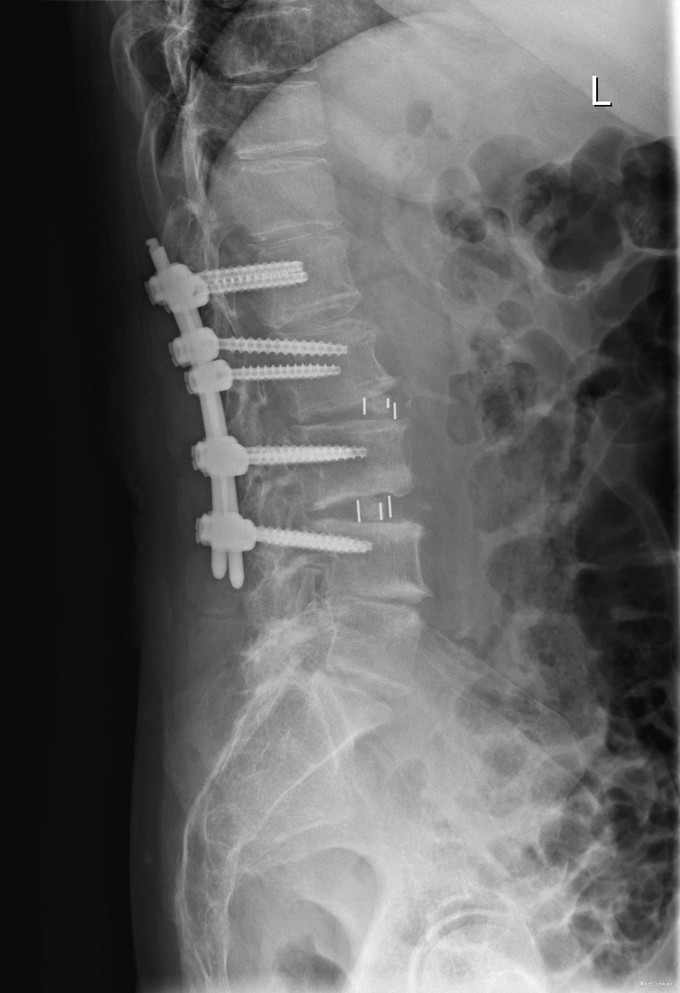 诊断:1 脊柱侧弯 伴不稳 2椎管狭窄 治疗: 前期微创腰椎侧路融合手术+后期 微创后路经皮内固定