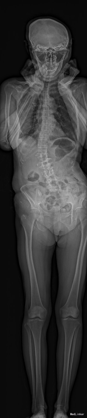 诊断: 腰椎侧弯,腰椎间盘突出 治疗:1期微创侧路椎体融合术+2期 微创后路经皮内固定术