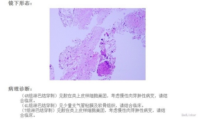 放射科也考虑结节病可能 收住院行EBUS-TNBA穿刺 做了两次穿刺均未找到癌细胞,考虑肉芽组织