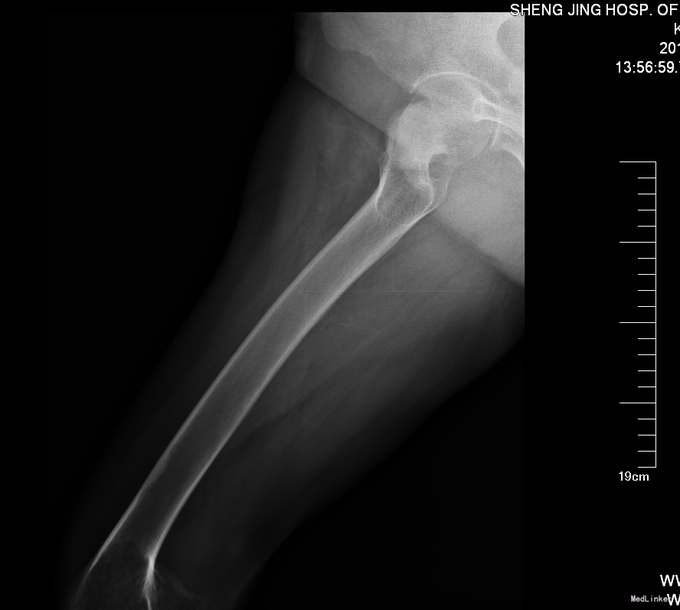 主诉:摔伤后右髋部疼痛活动受限9小时 现病史:患者及家属自述患者于2014年4月24日在中国医科大学附属盛京医院门口被人推倒摔伤,致右下肢疼痛活动受限。被急送至我院急诊就诊。行骨盆DR,右下肢DR检查示:右股骨颈骨折。患者为求系统诊治来我科治疗。患者平车入病房,无发热,无头晕头迷,无胸闷气短,无心慌心悸,无腹痛腹胀,受伤后大便未排,小便正常。
