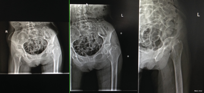 查体:左侧下肢轻度外旋畸形。左下肢轴向叩击痛阳性。 辅检:左侧股骨颈骨折。