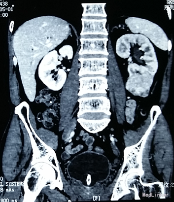 查体:一般生命体征平稳,左侧肾区叩击痛(+)。 辅助检查:血生化:肌酐101umol/L。 泌尿系彩超:左肾实性占位(74x48mm) 双肾ECT:肾小球滤过率(GFR)左肾为29.77 ml/min,右肾为43.67 ml/min。左肾总体灌注正常,功能轻-中度受损 心脏彩超):房间隔缺损(继发孔型),舒张期左→右分流,左室EF64%。 外院CT:左肾下极占位。