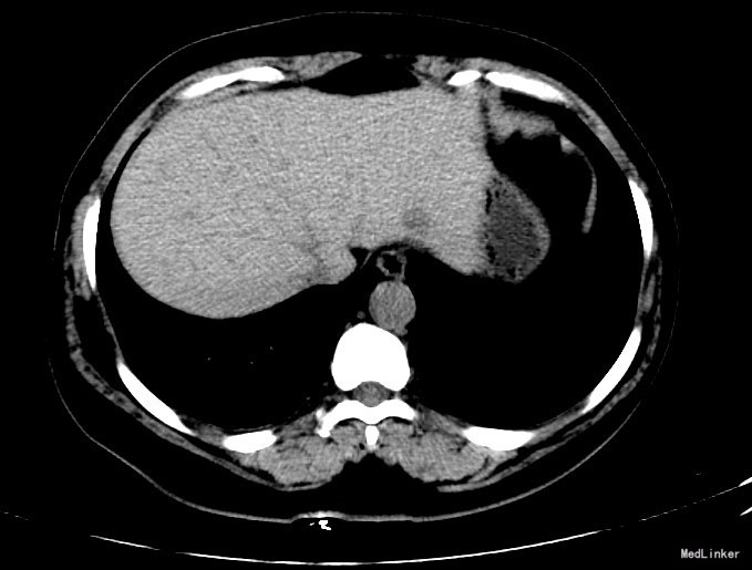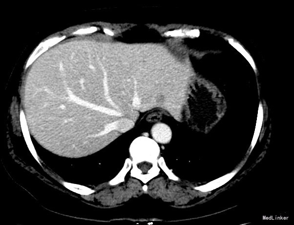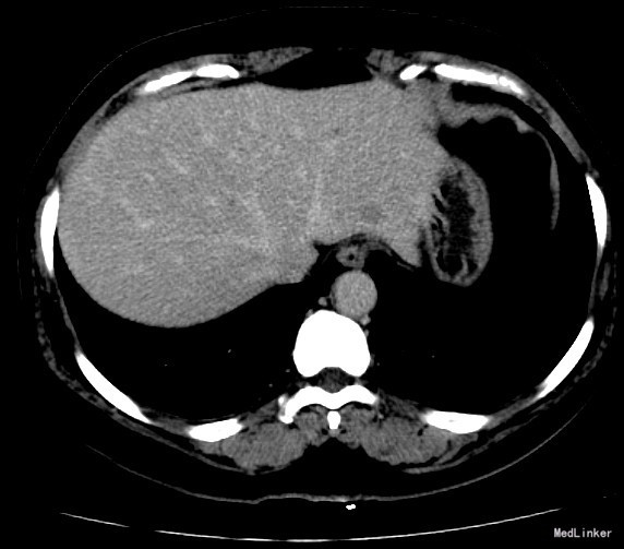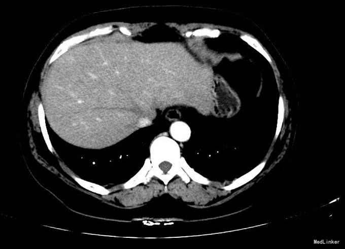 主诉:间断倦怠、胁肋胀痛2年,加重1周。 病史:现病史:患者2年前无明确诱因自觉倦怠、胁肋胀痛,化验肝功异常,HBVDNA阳性,诊为"CHB",启用阿德福韦酯抗病毒至今。近1周无明确诱因自觉倦怠加重伴胁肋胀痛,化验肝功异常,为系统诊治,就诊我院,经门诊医师详查后以"CHB"为诊断入院。该患者收入我院中医科,入院后增强CT发现肝内站位并且甲胎蛋白增高,转入我科治疗