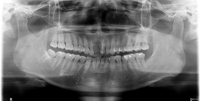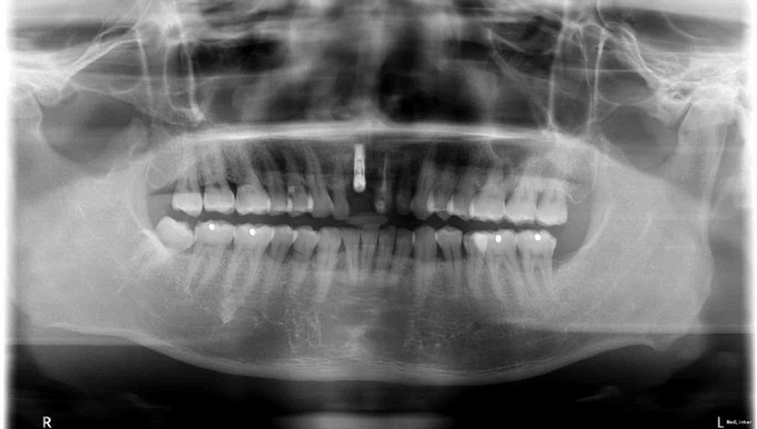 检查:右上后牙缺失,缺牙间隙正常,对颌无伸长,邻牙探-叩-松-,X片显示,缺牙处骨质稀疏 建议患者3月后复诊拍片