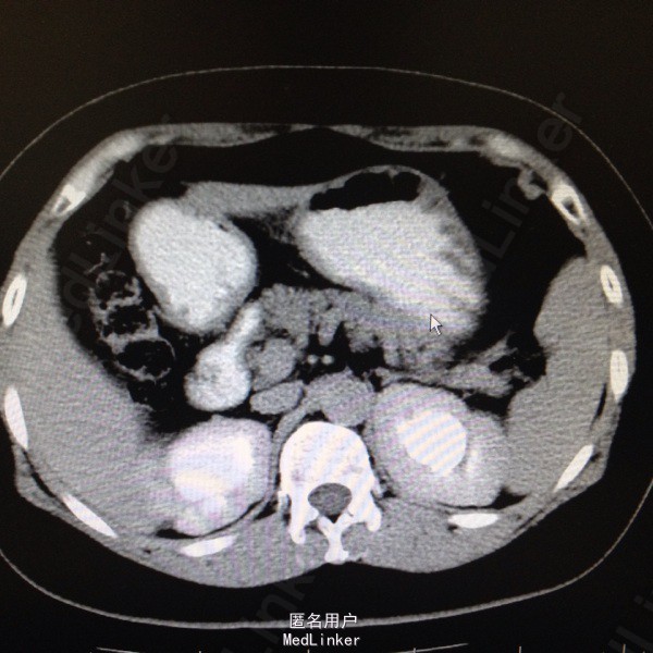 诊断:双肾及双输尿管积水 神经源性膀胱 给予患者留置尿管后1周行泌尿系彩超检查肾积水减轻。