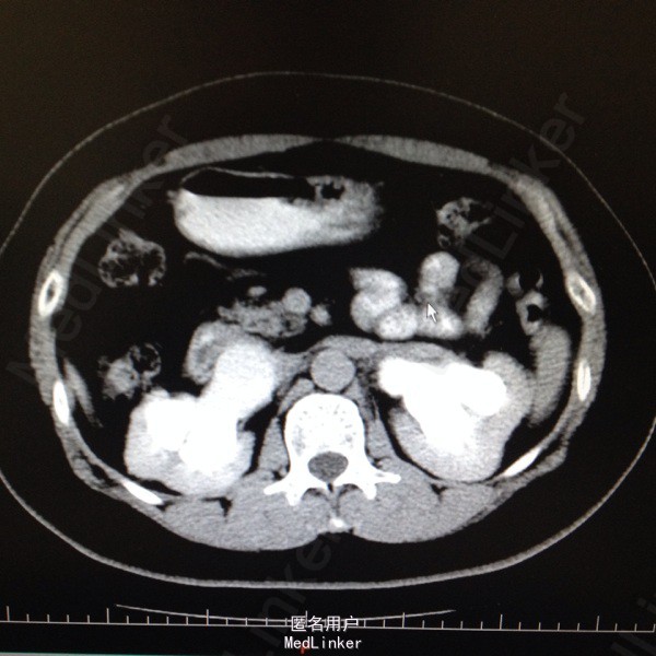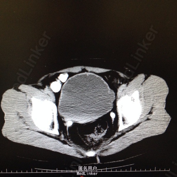47岁女患。 病史:患者6年前因宫颈癌行全子宫及双侧附件切除。盆腔淋巴结清扫。腹主动脉旁淋巴结活检术。后又行局部放疗。因双肾积水来我科。患者自述平时轻微排尿困难,尿线细。