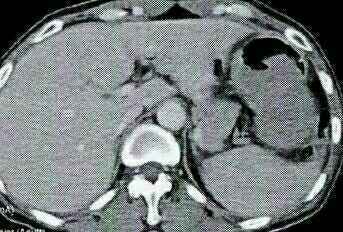 胃镜提示胃底部和胃窦部有小片状糜烂。腹部CT结果提示:近胃角部胃浆膜面肿块,首先考虑胃肠道间质廇。血常规,生化等未见明显异常。