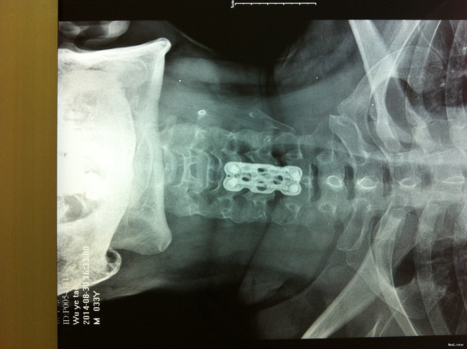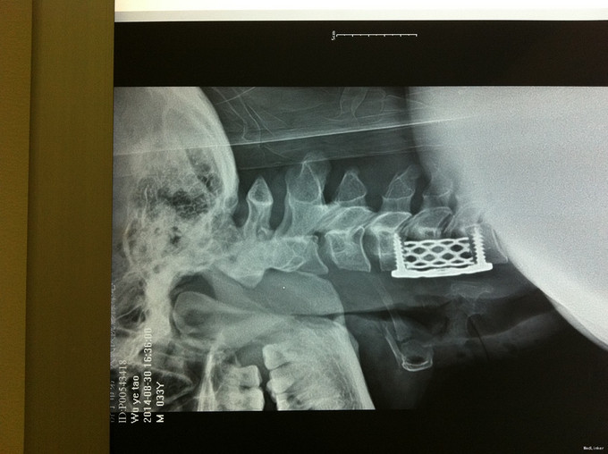 随访 1、应常规术后1个月、3个月、半年随访; 2、术后1个月,双下肢肌张力减低,行走不稳较前改善,继续服用营养神经药物。 讨论:1、颈椎病颈椎手术前路减压,两个节段椎间融合内固定术还是椎体次全切术?