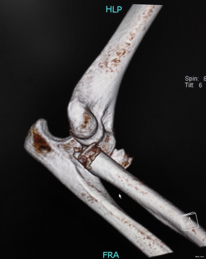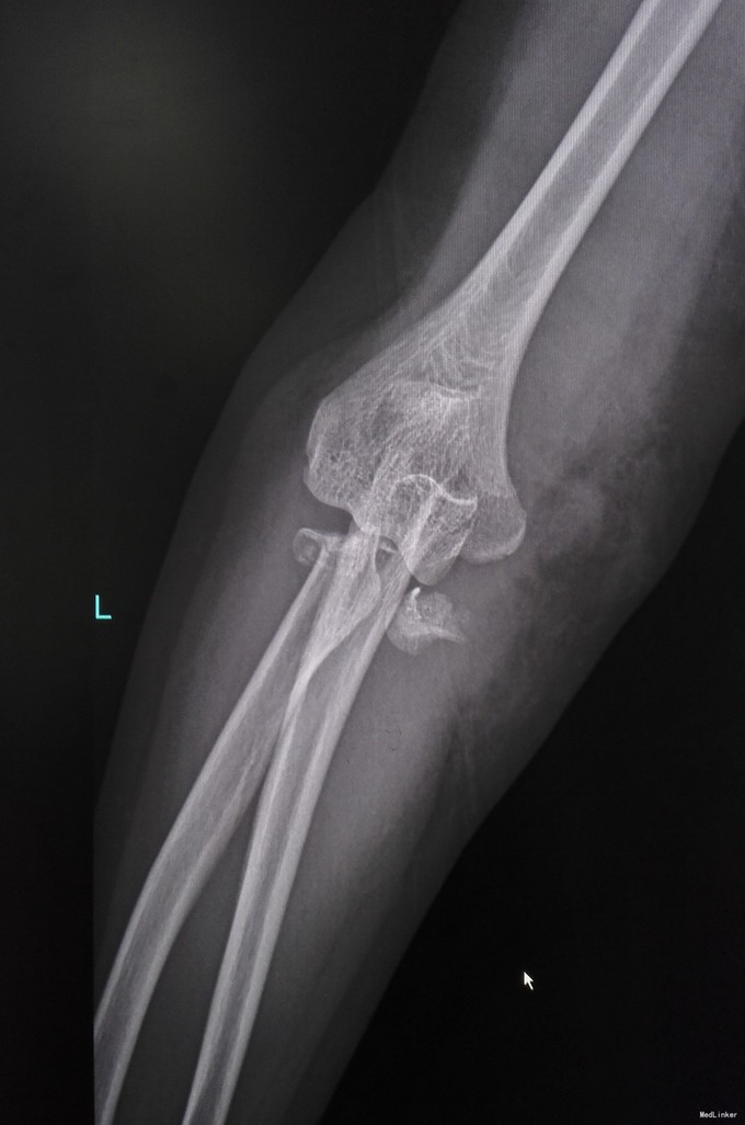 女性,67岁,车祸致右肘肿痛畸形1天入院