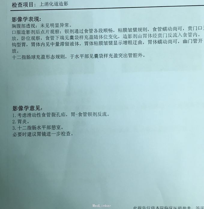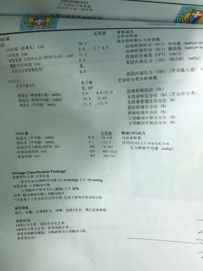 主诉:烧心反酸,反食8年,咳嗽一年半。 病史:患者8年前间断开始出现反酸,烧心,反食,无腹痛腹泻症状,进食甜食、辛辣食物后明显,口服抑酸药缓解,停药复发。一年半前开始出现阵发性咳嗽,伴咽痒,咳白色泡沫痰,外院按呼吸道疾病(具体不祥),口服中药治疗,症状无缓解,反酸烧心明显时加重,控制反酸烧心时缓解。