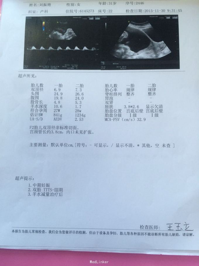 停经28+1周,双胎输血综合症3期