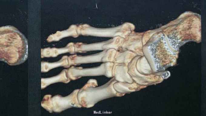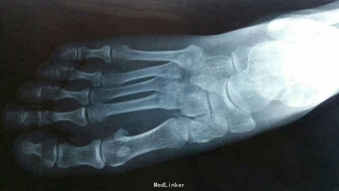 主诉:右足外伤后肿痛,活动受限11天。 现病史:患者于2015年11月10日摔伤右足,当即肿痛,活动受限,急去当地医院拍片及入院行石膏固定保守治疗,效果不佳,为求进一步治疗来诊我院,经门诊阅片及查体后以“右足多发骨折,脱位,韧带损伤”为诊断收入院。