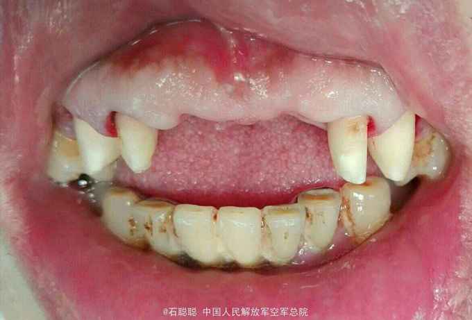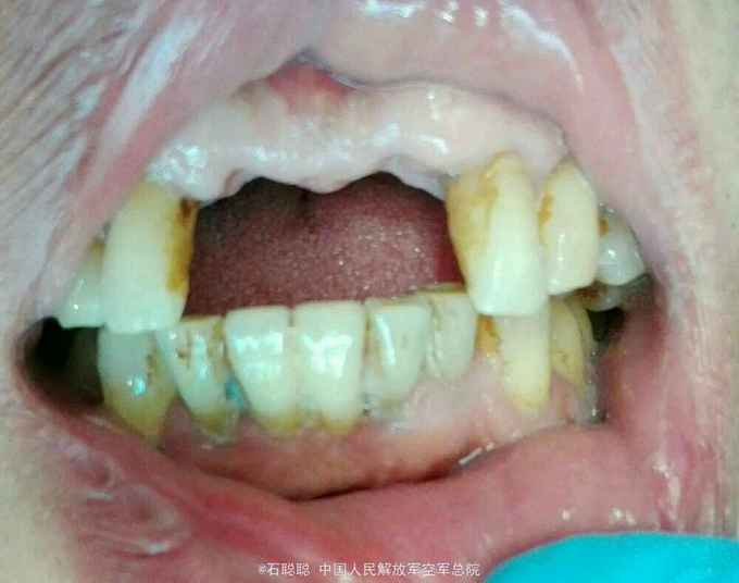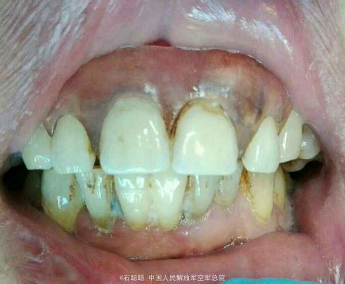 讨论:在这个病历中,由于12、22牙槽骨有所吸收,并且缺牙区牙槽骨有一定量的丧失,这种修复方式并不推荐,但患者了解各种修复方式优缺点之后,强烈反对种植和活动修复,只能进行固定桥修复,治疗结束后除外嘱咐患者常规义齿戴总注意事项,一定要定期复查,观察基牙情况,防止牙槽骨进一步吸收。在制作义齿时,加工厂为补充缺牙区的牙槽骨吸收,龈端唇舌侧均补充了较多的瓷,可能会使得义齿视觉上比较大,这也是一种折中的做法。