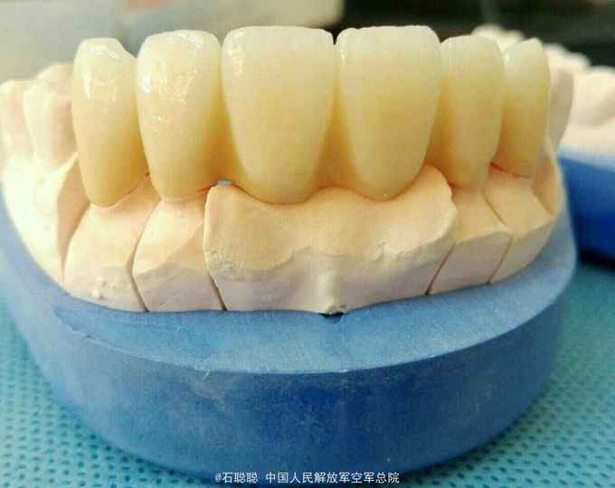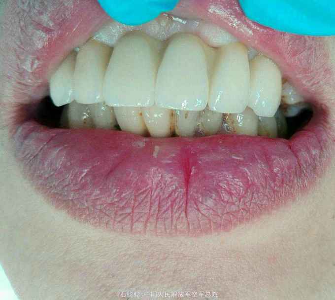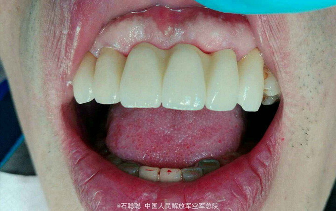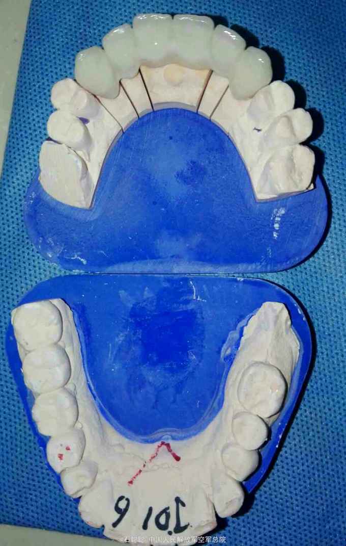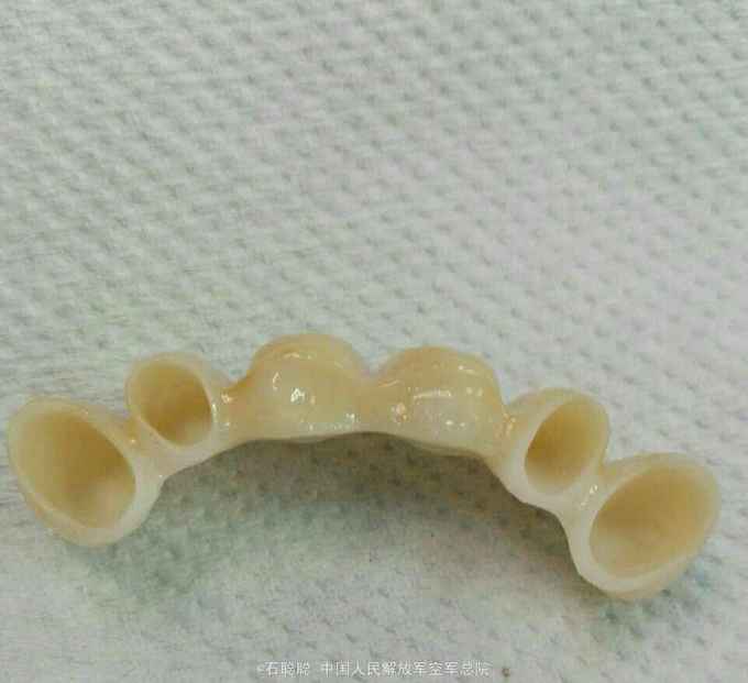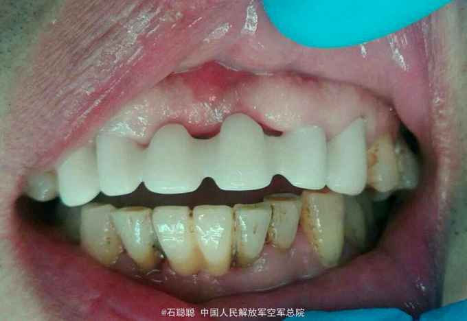 上前牙全瓷固定桥修复一例 主诉:上前牙缺失5年余 现病史:5年前上前牙因外伤松动脱落,戴活动义齿3年余,患者自觉影响美观、咀嚼,来我科要求重新修复。 既往史:否认高血压、心脏病、糖尿病史,否认药敏史