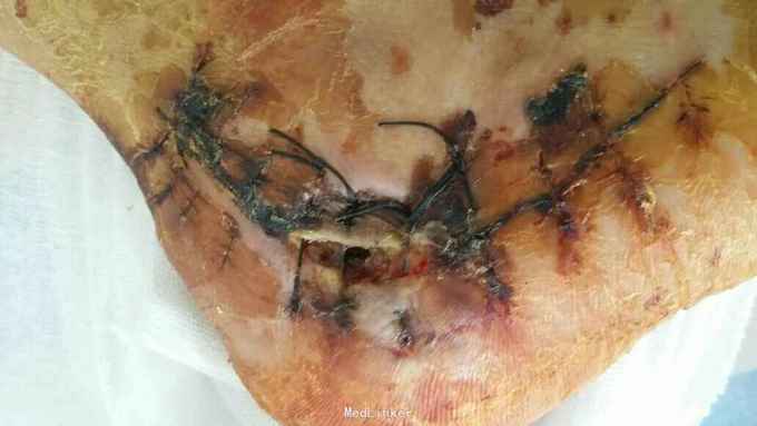 跟骨骨折术后1月,皮肤愈合差