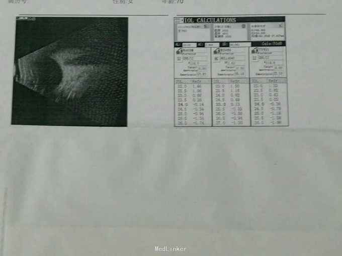 患者70岁,年龄较大,晶体完全混浊,所以超乳时一定要掌握好能量,以免损伤角膜内皮