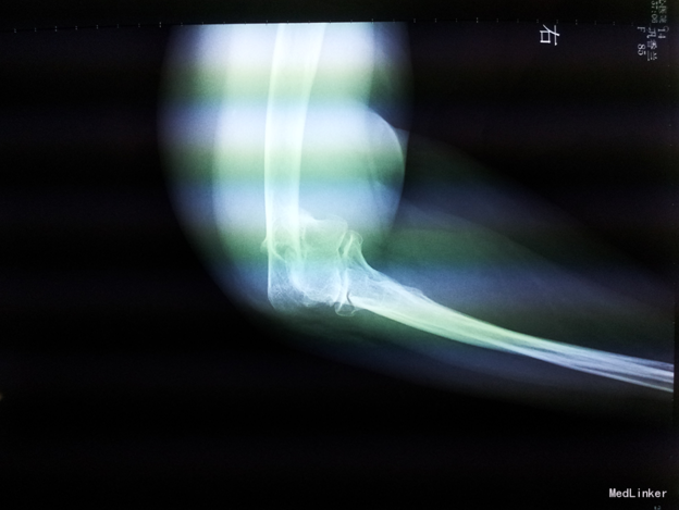主诉:右肘关节疼痛活动受限5小时。现病史:5小时前,在家中摔倒,意识清醒,先后右膝、左上肢着地,自觉右上肢疼痛,伴活动受限。后就诊于铁西区中心医院,行右肘关节正侧位DR提示肱骨骨折,左膝关节正侧位提示未见异常,未予治疗,现为求进一步诊治来我院就诊