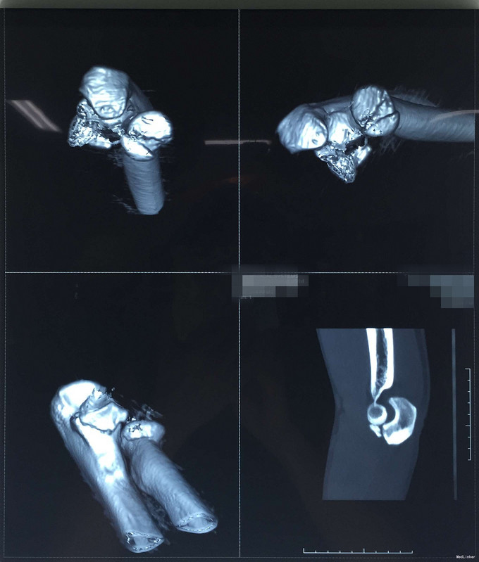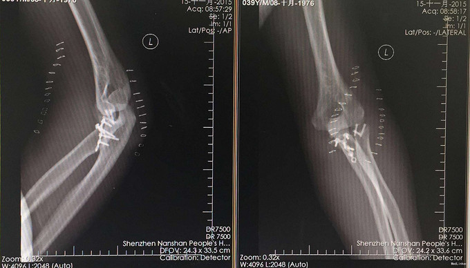 完善检查,行左尺骨鹰嘴冠突骨折+左桡骨小头骨折切开复位内固定术