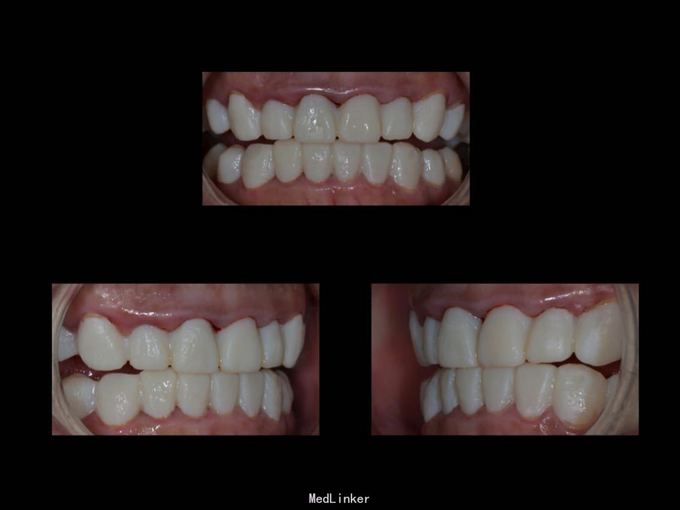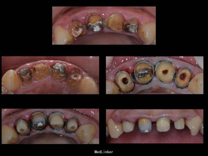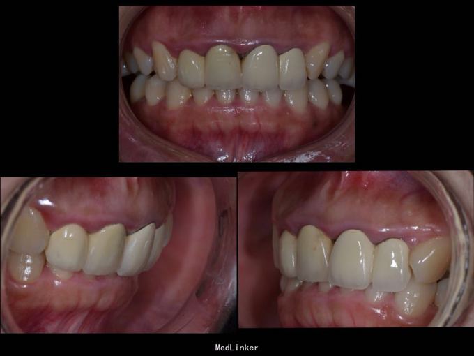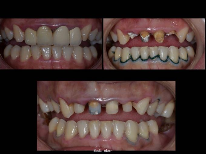 1.旧修复体覆合大,11 212 21 22龈缘位置较低且不对称,能做冠延长协调红白美学,更好 2.拆旧桩核要小心根折,用超声振动,一点一点拆.11桩核粘固比较牢固,根尖炎,定期观察行根尖手术倒充填。 3贴面的粘接,耐心