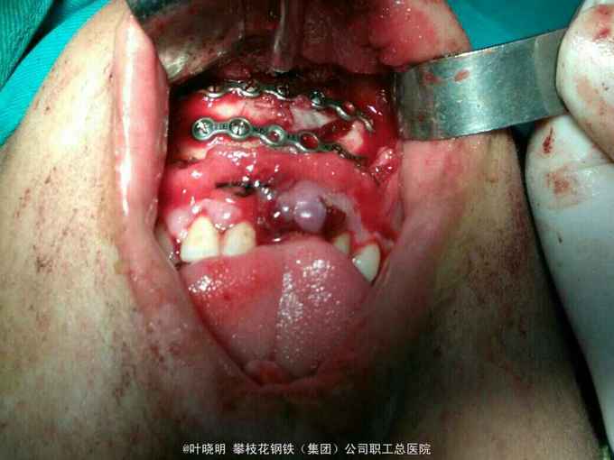 随访:该患现术后第一天,术后恢复密切观察中。 讨论:如患者经费允许,可采用聚左旋乳酸高分子可吸收接骨材料行坚强内固定,术后辅以牙弓夹板外固定。无论使用何种材料,必须在骨折区张、应力曲线上各置入一张接骨板,固定时首先以恢复咬合关系为前题,在牙尖交错位上行坚强内固定。