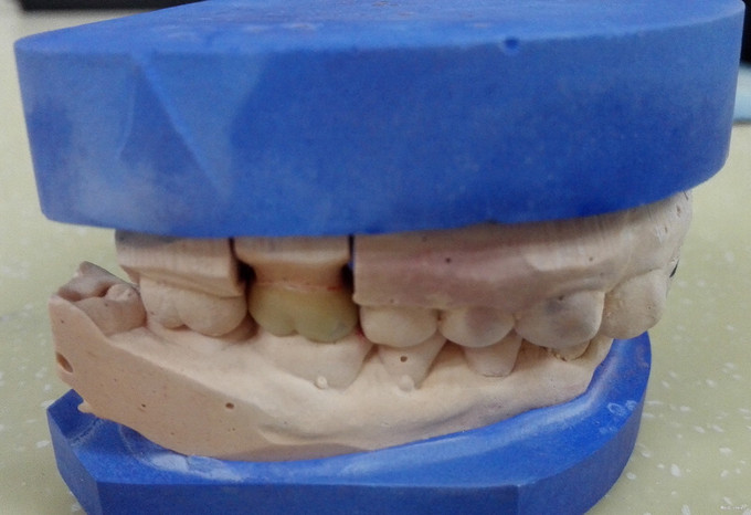 随着牙髓治疗技术的发展与完善,经过完善治疗的残冠、残根得以长期保留,常用的方法是桩核冠修复,但是对于牙合龈距离过低的磨牙牙冠修复的固位问题一直是临床修复医生的一大困扰。通过采用在牙体预备时使轴壁相互平行,减少牙体预备时的锥度来增加固位力的方法效果不显著。而嵌体冠具备嵌体、全冠两者的结构特点,既可以从冠内也可以从冠外获得固位力,从而取得良好的修复效果。它适用于咬合紧,牙合龈距离短(<5mm),经牙髓治疗的死髓牙。 本病例表现为咬合紧,牙合龈距离短,难以用常规的修复方法完成治疗。经过认真的口腔检查,结合X线牙片,患者的需求,综合分析判断患牙的保留修复价值。牙体预备时,轴壁相互平行,髓腔固位的洞壁无倒凹,微外展,点、线、角清晰,洞缘形成45度洞斜面。 嵌体冠嵌入牙体窝洞内,利用髓腔固位,和基牙轴壁间形成很强的机械嵌合力,同时覆盖牙体外部,和冠边缘形成环抱,内外形成一个大整体,共同构成嵌体冠的抗力系统,有效提高了患牙在行使功能时的抗力,恢复了生理功能和外形。在临床操作中,选择好适应症,再根据牙体形态、牙髓活力、修复体的长度、残余健康牙体组织量等不同来确定嵌体洞型的大小、深度、形状等。