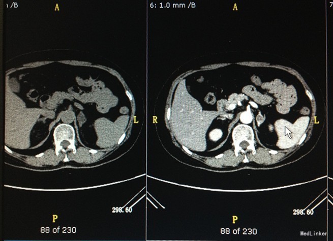 患者,女,60岁,以“发现血压升高2年,肾上腺占位3个月。”入院, 现病史:患者于2年前发现血压升高,血压最高180/100mmHg,口服非洛地平5mg日一次口服,血压控制在140/80mmHg左右,3个月前因“肺炎”行CT检查时发现肾上腺占位。