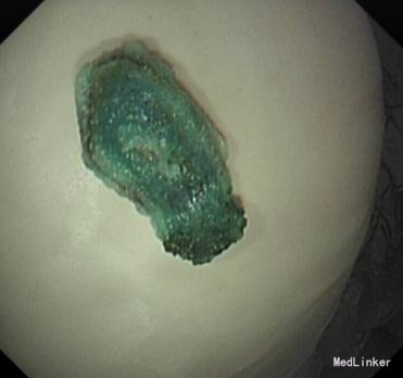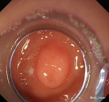 随访:患者上腹部胀痛不适明显改善,术后3月复查胃镜提示胃窦部呈ESD术后疤痕改变。 讨论:异位胰腺(Heterotopic Pancreas)亦称迷走胰腺(Aberrant Pancreas)或副胰(Accessory Pancreas),凡在胰腺本身以外生长的、与正常胰腺组织既无解剖上的联系,又无血管联系的孤立的胰腺组织,均称为异位胰腺。它是胚胎发育过程中形成的一种先天性异常疾病。异位胰腺的临床表现可因其解剖位置、大小不同而各异,有的临床上可无症状,易被误诊和漏诊。胃肠道异位胰腺最为常见的并发症是异位胰腺炎,表现为腹痛、腹胀、恶心、腹部不适、消化不良等类似上消化道溃疡的症状,有时表现为严重的持续性疼痛,没有明显的规律和周期性,内科治疗效果欠佳,有学者认为这是由于位于粘膜下的异位胰腺压迫浅层粘膜致消化道壁异常及其本身分泌的胰液中消化酶的作用,引起慢性炎症、消化性溃疡所致。外科手术是治疗有症状的胃肠道异位胰腺最有效的方法,手术方式视胰腺异位位置和病变程度而定。无症状的胃肠道异位胰腺组织常在其他手术过程中偶然发现,在不影响原定手术及切除异位胰腺不困难的情况下尽可能予以同时切除。随着微创外科的发展和其理念的深入人心,对于直径不超过2cm的胃壁异位胰腺,内镜下局部切除可能会成为首选的治疗方式。