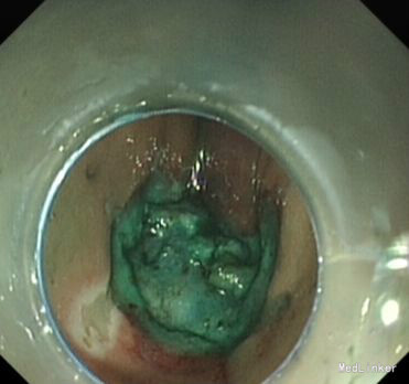 诊断:1.慢性胃炎;2.胃肿物(异位胰腺);3.胆囊息肉 治疗:予气管插管全麻下行ESD术切除胃窦肿物:胃窦大弯侧见一约8mm×8mm肿物,边界尚清,中央凹陷,按ESD切除,观察切除病灶内层可见腺管开口。术后予头孢呋辛预防感染,潘妥洛克静滴抑酸护胃,铝镁加口服中和胃酸、保护胃粘膜,以及补液营养支持。患者经治疗后症状改善,ESD术后恢复可,术后第6天出院。ESD病理:(胃窦隆起)符合异位胰腺组织。